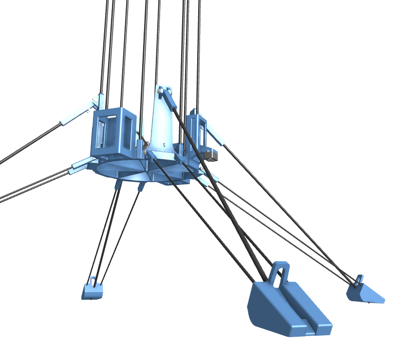 I've also redesigned landing pads. This allows for them to be held closer to the structure before deployment, and it should also improve the reliability of the two parts of the legs locking together. I've also added a ring that attaches the two parts of landing legs, avoiding the need of using a zip tie.