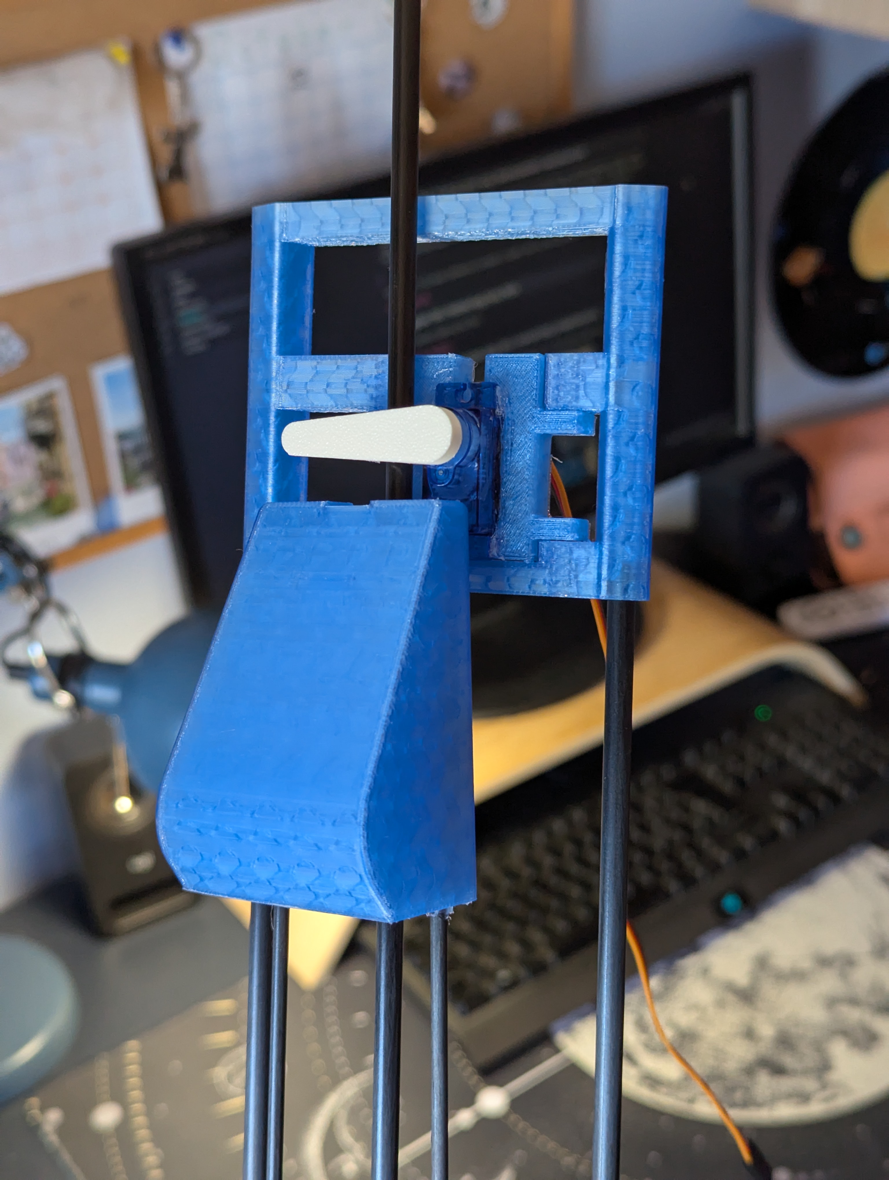 Turns out, not really great. I was hoping for the friction from the bolts to prevent the servo from slipping, but this is not the case. In this prototype, the print can bend slightly, which wouldn't happen in the real thing, potentially increasing the friction. However, I've decided to redesign the servo mounts to make sure the servo will stay securely in place.