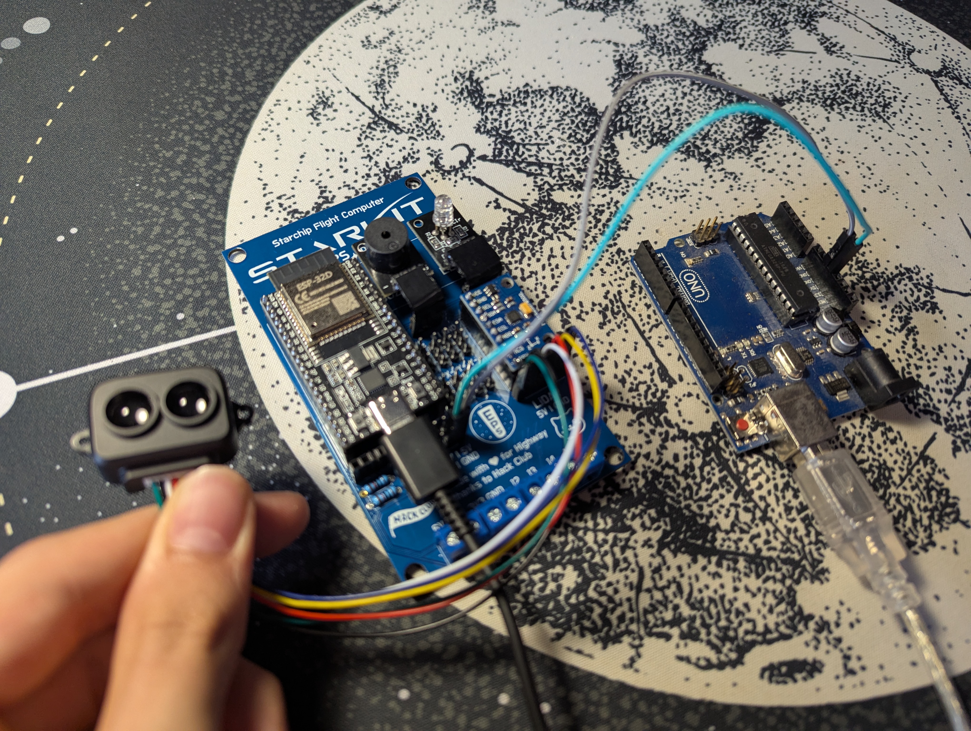 I realized on the rocket the LiDAR would be 50cm apart from the PCB, whereas the IMU would be mounted on it. This could cause issues when both are in the same bus, specially when running the LiDAR over its rated clock speed. I should have probably just used two buses and change the code of the libraries to work like that. Still I assembled the circuit again to test it with longer wires, and it still worked flawlessly.
