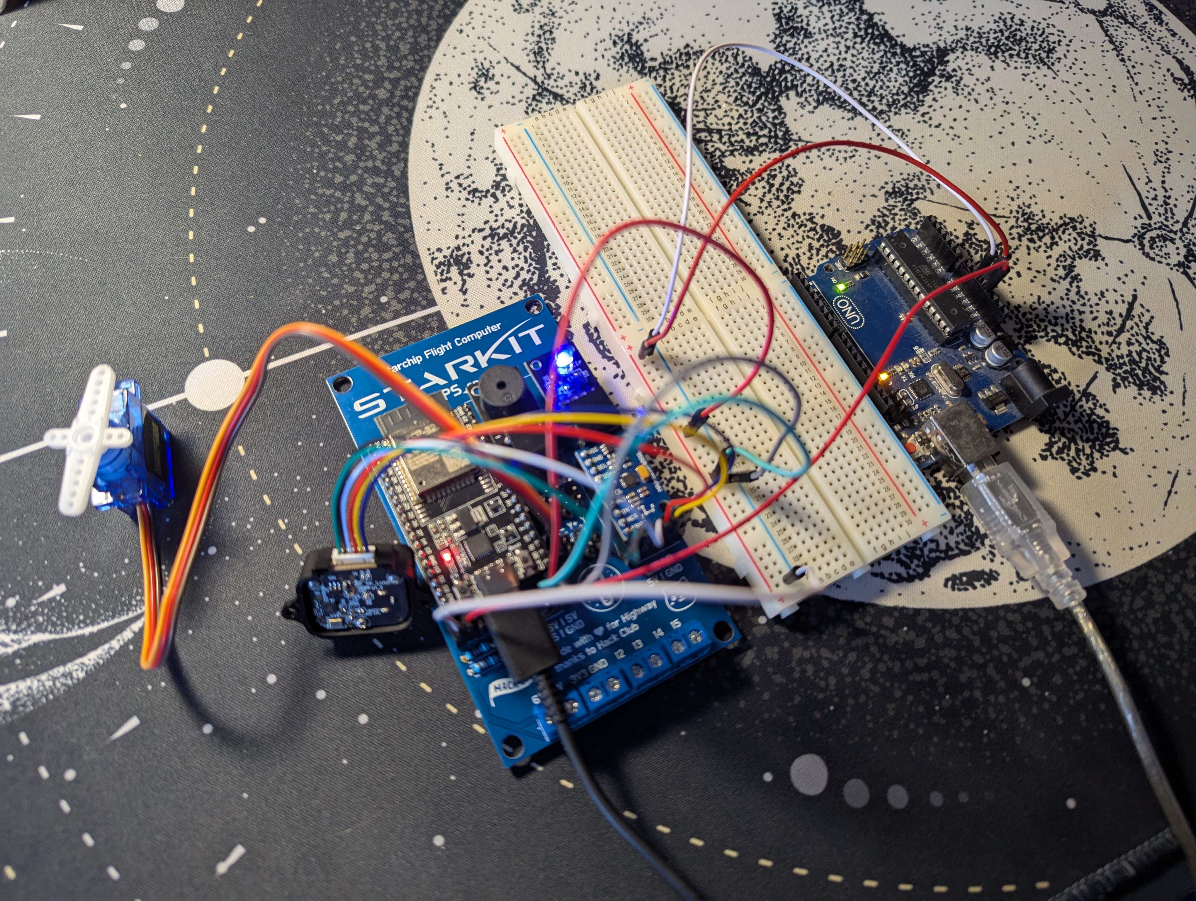 Next, I tested the TVC servos. I used the same system in which I get the power from an Arduino but all processing happens on the ESP32. I got it working in no time and I was honestly surprised with their speed. A huge upgrade over the SG90s I had always worked with.